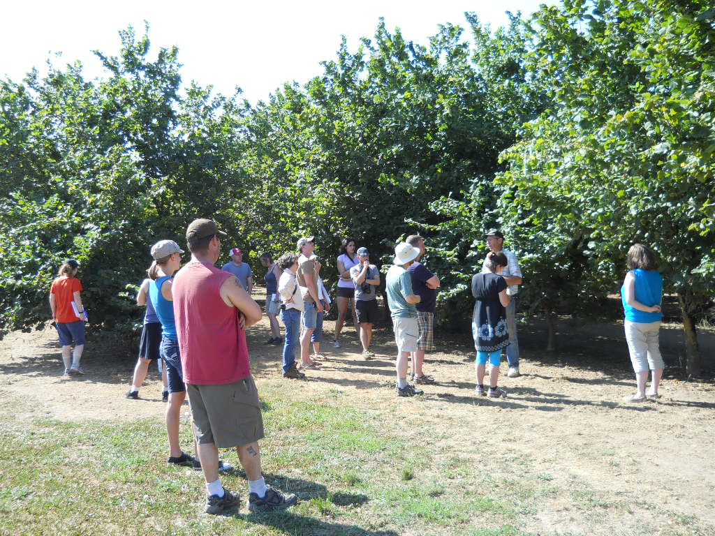 Today we had the pleasure of hosting a group of Portland State University students from Barbara Brower’s Geography “Farmscapes” class. Each summer Ms. Brower takes a group of her students on an Agricultural tour of the Willamette Valley. This year Hazelnuts were one of the crops they learned about.